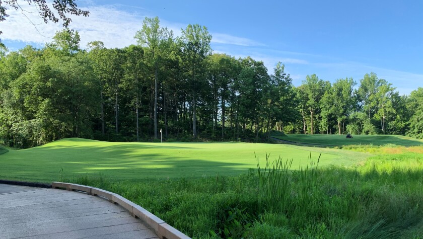 The new 5th hole presents length and a demanding tee shot that can’t waver from a center target line. Longer hitters may find the only flat area on this fairway that is guarded by a marsh. The green complex is forgiving assuming one plays away from the trouble left. This is the last of five consecutive par 4 holes requiring a series of accurate shots tee to green.