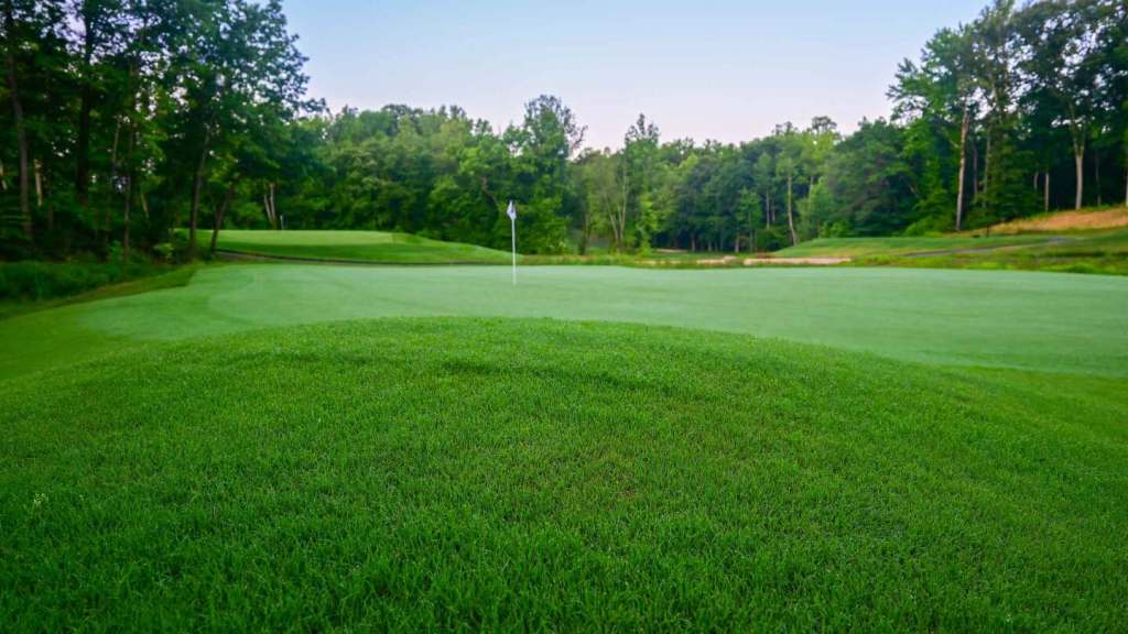 The fairway requires some care on both sides with heavily wooded areas protecting the uphill landing area. Depending on the conditions a fairway wood, hybrid, or iron off the tee will set up an uphill hill approach shot to a plateaued green complex with falloffs that can deflect approach shots away from the putting surface that is relatively short from front to back.