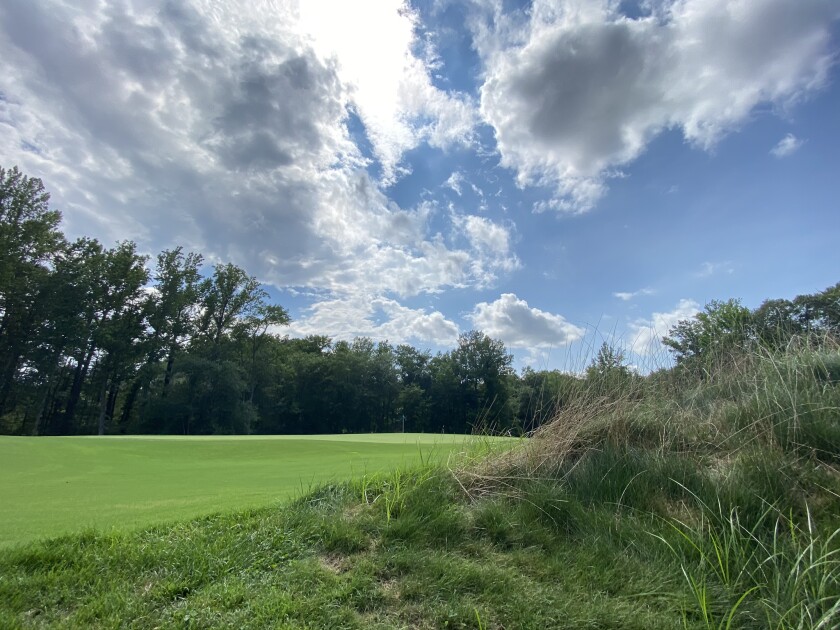 The new 5th hole presents length and a demanding tee shot that can’t waver from a center target line. Longer hitters may find the only flat area on this fairway that is guarded by a marsh. The green complex is forgiving assuming one plays away from the trouble left. This is the last of five consecutive par 4 holes requiring a series of accurate shots tee to green.